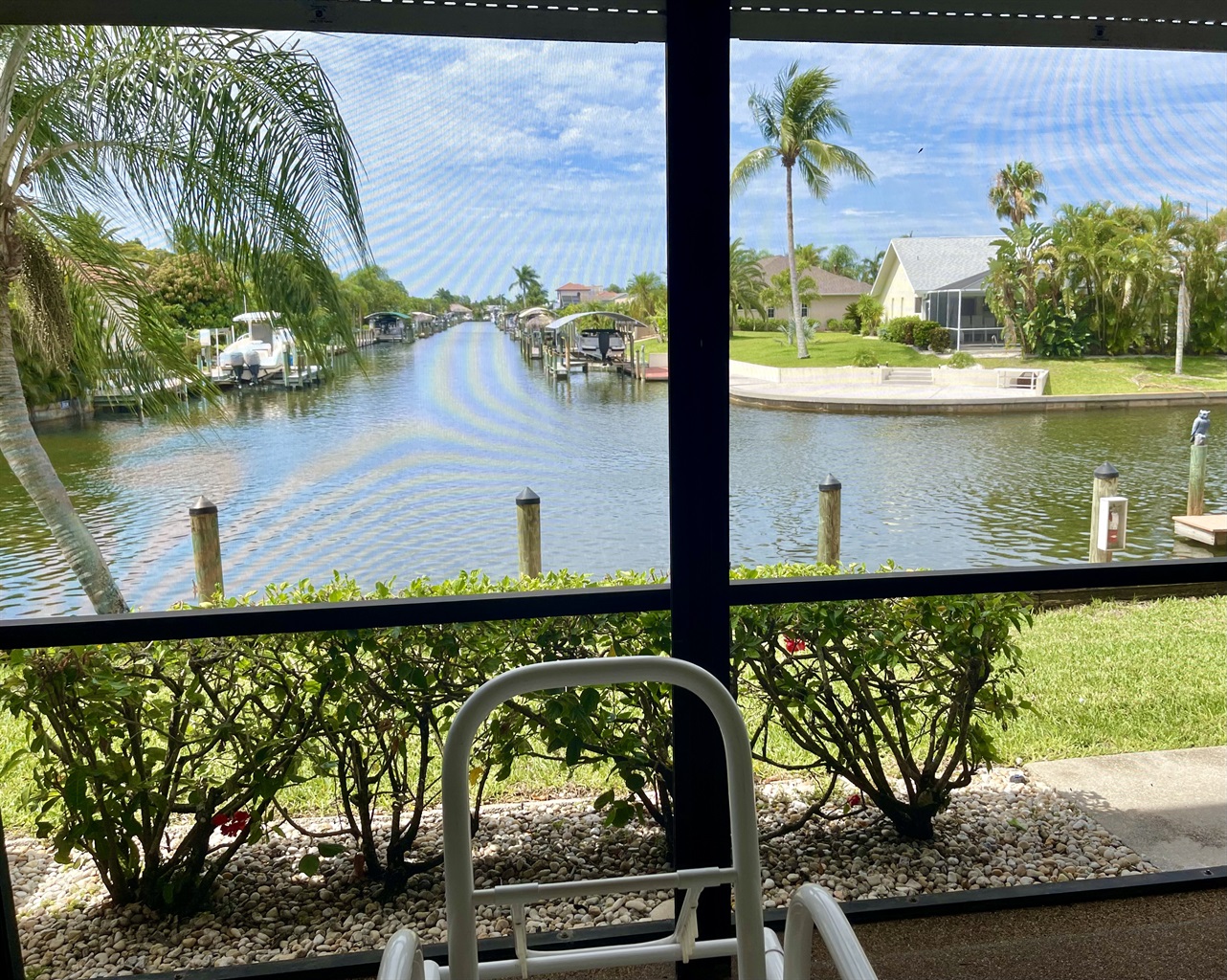 2br/2ba 1166sf southern facing condo on incredibly desirable Rubicon canal offered for seasonal or long term rental in a quiet condominium complex in Cape Coral.