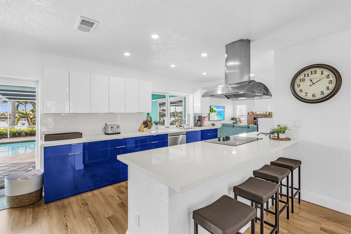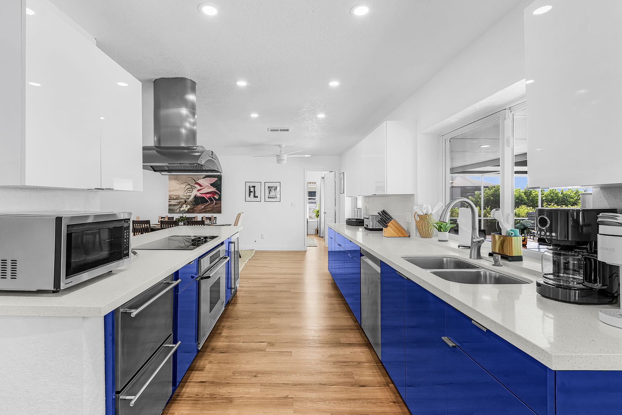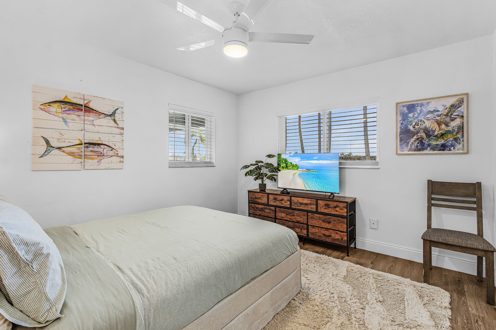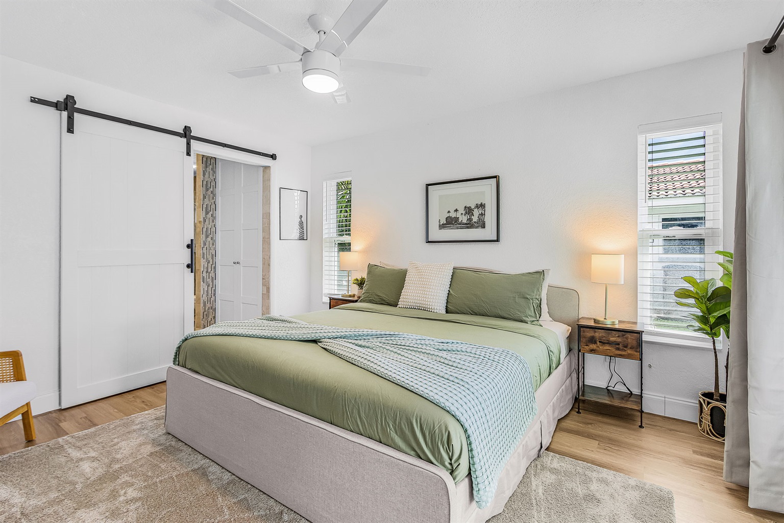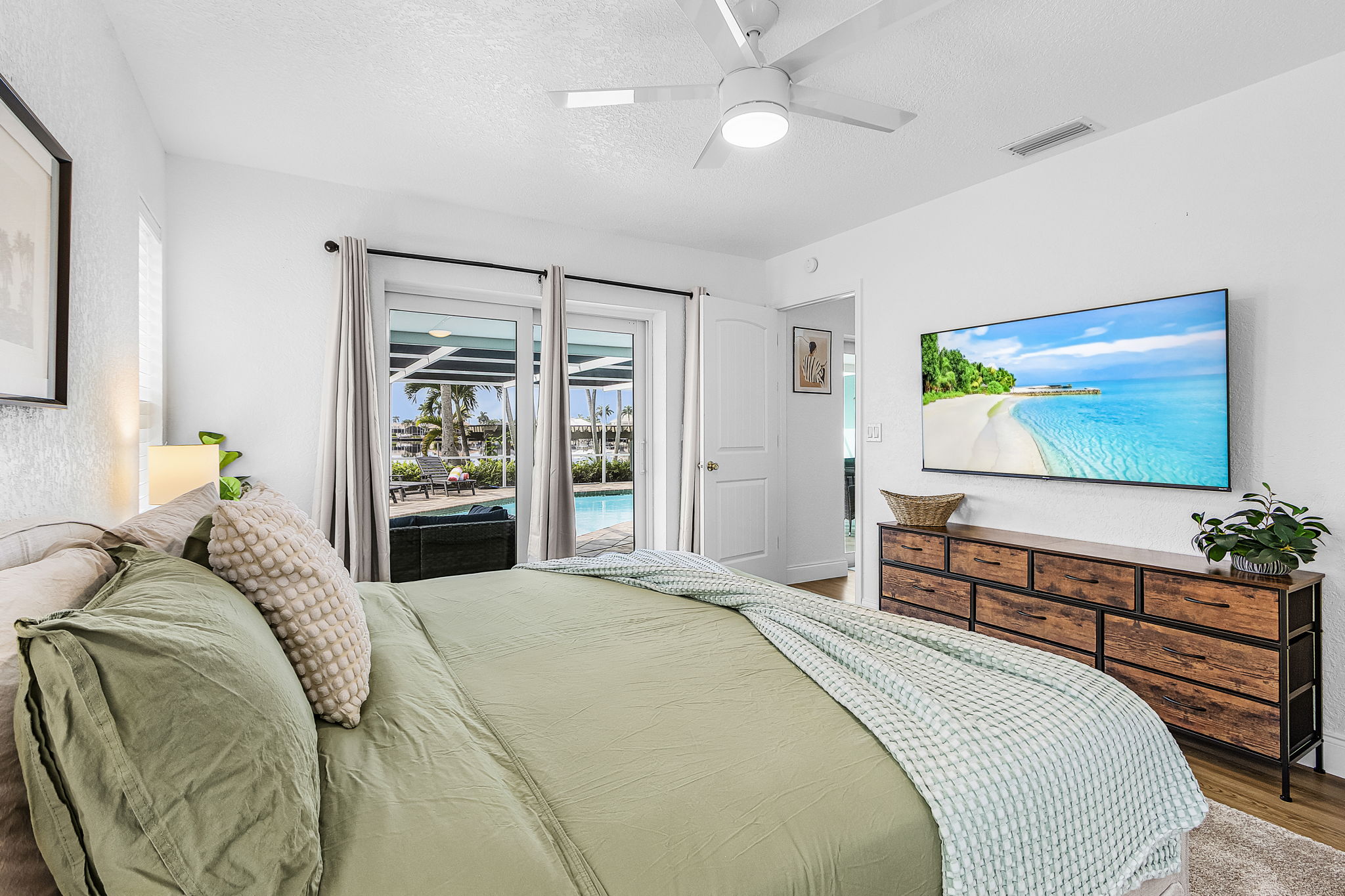 Step inside and enjoy 1,836 sq. ft. under air, featuring light vinyl flooring throughout and stylish, airy furnishings with a fresh Swedish touch. The villa offers 3 comfortable bedrooms (1 king, 2 queens) and 2 modern bathrooms. The master suite boasts an elegant en-suite with dual sinks, a toilet, and a spacious rain shower. The guest bedrooms share a second bathroom, complete with another oversized walk-in shower and convenient direct access to the pool area.